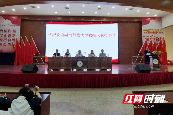 授牌仪式结束后,陈红桂为六百多名四中学子作《努力成长为堪当民族复兴大任的时代新人》思政课主题讲座,他寄希望于青年学子从坚定的理想信念、深厚的家国情怀、高尚的品德修为、高超的学识水平、执着的奋斗精神、良好的综合素质等六个方面,努力成长为堪当民族复兴大任的时代新人。同学们深受讲座内容的感召和鼓舞。