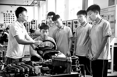 浙江省湖州市技师学院以就业市场需求为导向,培养企业急需技能型人才。王树成摄/光明图片