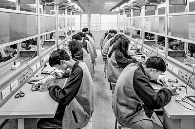 江西省南城县职业中等专业学校电子应用专业学生在电子实训操作室进行实操训练。吴国龙摄/光明图片