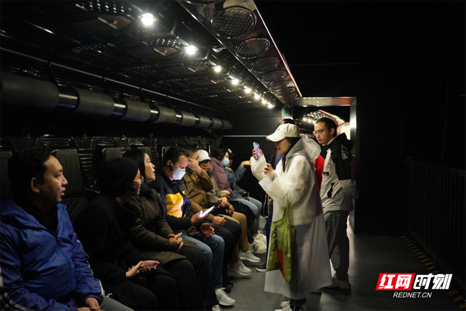 代表们正在体验飞行影院。