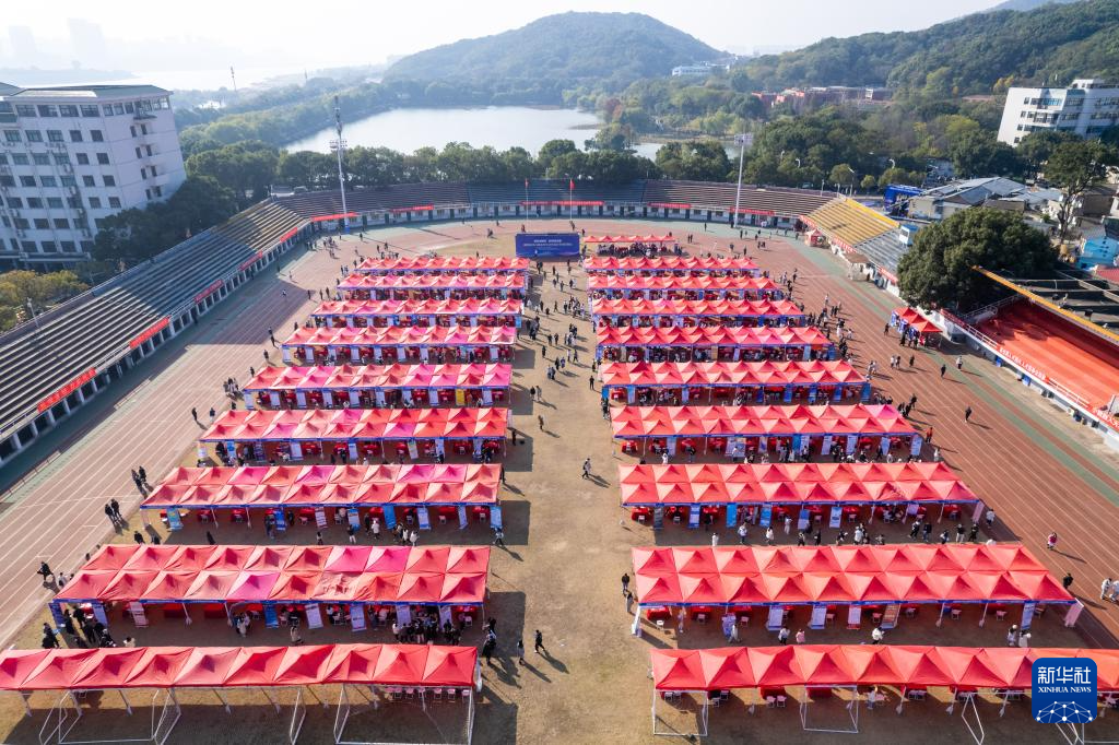 这是12月1日在安博线上平台体育场拍摄的招聘会现场(无人机照片)。