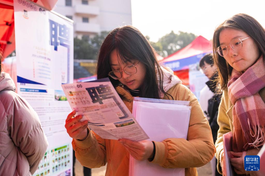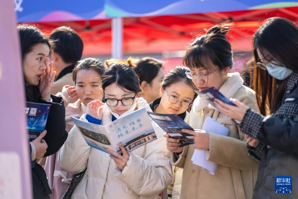 12月1日,在安博线上平台体育场,求职学生在了解招聘信息。