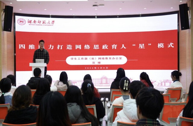 此外,学生工作部网络教育办公室范增老师以“四维四力打造网络思政育人‘星’模式”为题,向学生们介绍了学校近年来用心用情构建“贴近学生、关爱学生、服务学生”的网络育人“星”样态。