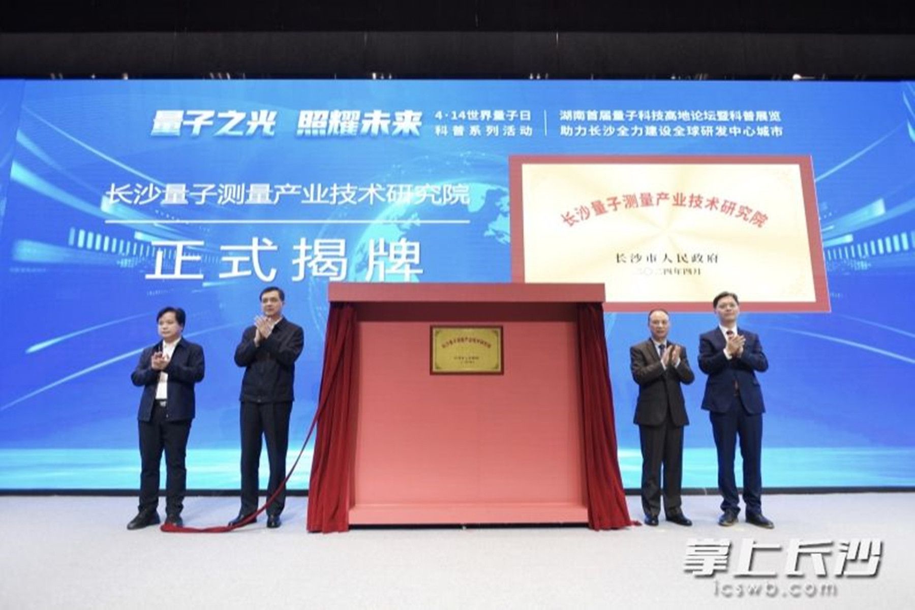 活动现场,周海兵为长沙量子测量产业技术研究院揭牌。长沙量子测量产业技术研究院,是量子测量领域集人才集聚、协同创新、成果转化等于一体的科技创新平台,将聚焦国家量子测量基础仪器“卡脖子”现状及紧迫需求,联合相关高校、科技企业和科研院所,积极布局绝对重力测量、新制自主导航、冷原子钟以及量子教学仪器等关键技术和核心产品,开展量子测量应用技术创新及其产业化应用,形成技术创新梯队,培育产业领军人才,构建产业链上下游合作创新生态,推动产业集群发展,打造湖南乃至全国的量子测量科技产业高地,为长沙全球研发中心城市建设贡献积极力量。
