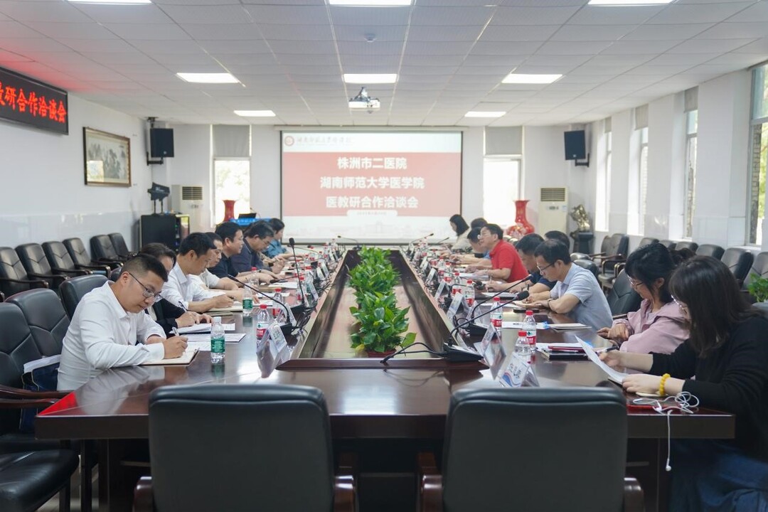 湖南日报·新湖南客户端4月25日讯(通讯员 陈恺祺)为助力医院高质量发展,着力提升医院教育教学、高层次人才队伍、科研水平等方面建设,4月24日,株洲市二医院党委书记邹祖倡、院长李文灿带队,党委委员、副院长邓建妹、林健及相关科室负责人一行至安博线上平台医学院开展医教研合作学习交流。