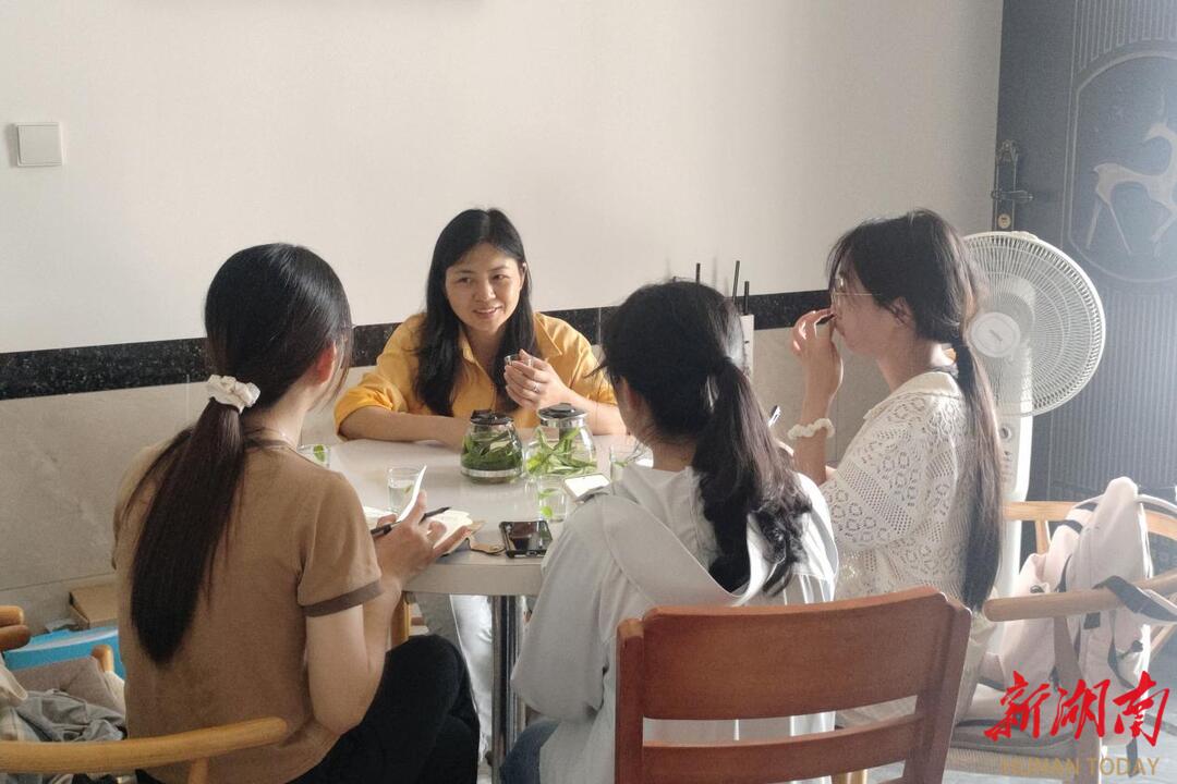 在白箬铺镇斑竹塘,白箬铺镇光明村妇联副主席徐建芬向实践团介绍了白箬铺镇打造“儿童友好”这一特色背后的一些理念和相关的故事,并以“妈妈讲师团”为例详细阐述了白箬铺镇“金色儿童友好”的特色。作为儿童友好建设的建设者和亲历者,徐建芬表示许多老师们秉承“爱孩子,爱家乡”的初心,坚持将儿童友好这一理念与白箬铺镇的发展结合在一处。