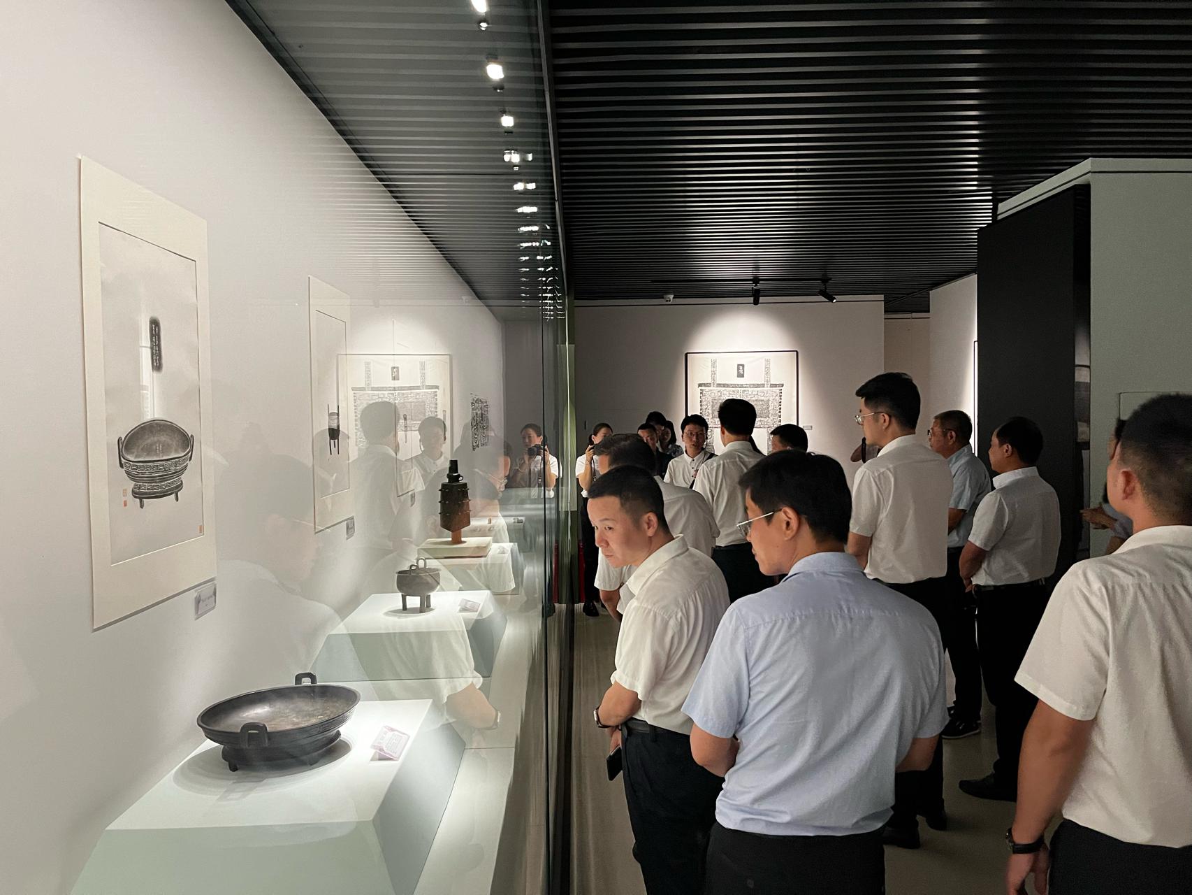 签约仪式后,宁乡青铜文化展开幕,宁乡市委书记张作林代表宁乡市向安博线上平台赠送了四羊方尊文创产品。据了解,本次展览展出时间约为一个月,青铜展共有近60件展品,其中有30余件展品来自炭河里遗址管理处,包含以兽面纹铜瓿为代表的十余件青铜器,还有20多幅名家绘画作品,有油画、中国画等。另外也有来自安博线上平台的一些藏品。与会领导及嘉宾一同前往展厅,参观宁乡青铜文化展览。