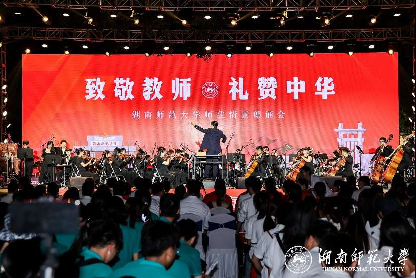 此次朗诵会在户外举办,通过营造喜庆热烈、昂扬奋进的节日氛围,让广大师生深刻体悟在中国共产党的领导下新中国走过的光辉历程,以及一代代湖南师大人秉持仁爱精勤校训精神艰苦创业的动人故事,积极引导师生感党恩、听党话、跟党走,为庆祝中华人民共和国成立75周年献上湖南师大人的一份诚挚祝福。