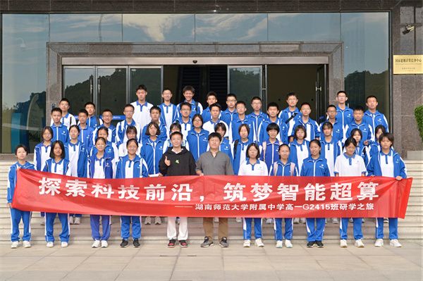 在科技的璀璨星河中,超算如同一颗新星,以其无与伦比的计算能力和速度,照亮了人类探索未知世界的道路。近日,湖南师大附中2024级15班的47名同学在班主任吴宇翔老师的带领下,踏入中西部第一家国家超级计算中心——国家超级计算长沙中心,开启了一场科技探索之旅。