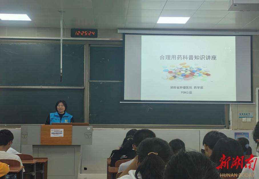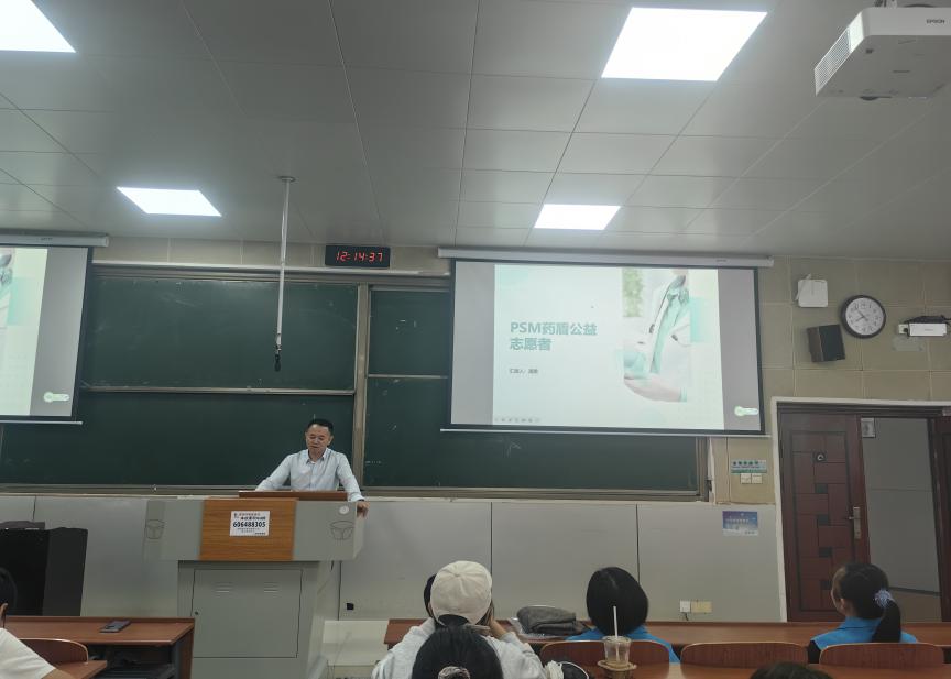 在追求学术卓越的同时,我们也应关注健康生活。合理用药,是维护健康的重要一环,PSM药盾公益基金会志愿者、湖南省肿瘤医院药学部罗佳教授通过宣讲,普及安全用药知识,教导大学生们如何正确选择、储存和使用药物,避免滥用药物,确保用药安全。通过公益宣讲,我们希望每位同学都能成为健康生活的传播者,用科学的态度对待药物,用理性的选择守护健康。