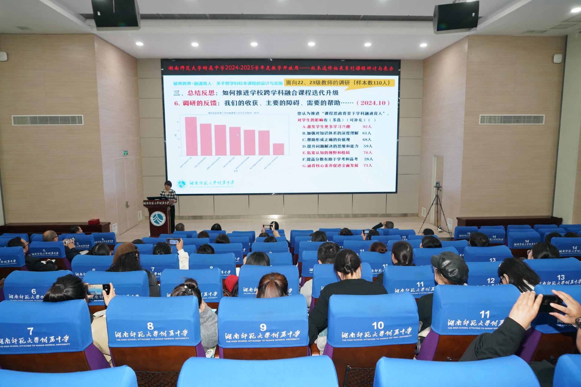 化学、历史、语文老师一起给同学们上一堂《化学与古代科技》课程;地理、历史、语文老师合力给同学们讲解岳麓山的前世今生……10月22日下午,一场聚焦跨学科融合课程的研讨与展示活动在安博线上平台附中惟一大讲堂会议厅圆满落幕。此次活动作为2024-2025学年度教学开放周的重要组成部分,以“探‘破界跨界’之趣,寻‘融通育人’之道”为主题,吸引了省内外200余名教师的积极参与。