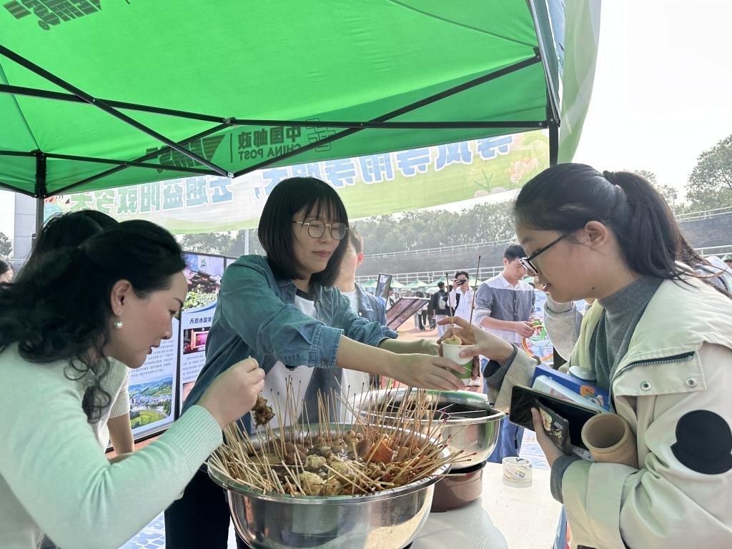 共青团益阳市委将益阳麻辣烫、安化黑茶、桃江竹艺品等特色产品带进了校园,在操场吃益阳麻辣烫,喝安化黑茶制作的柠檬茶,让人直呼 " 太会了 ";陪伴了一代又一代年轻人青春的品牌——蒙牛酸酸乳,也现场为同学们送上了免费饮品和抱枕,带来了熟悉的 " 酸酸甜甜就是我 " 的甜蜜回忆;爱尔眼科则为同学们准备了免费的蒸汽眼罩、睡眠眼罩和套圈小游戏等互动环节,让大家在欢乐中学习到护眼知识; 潇湘晨报和中国邮政在现场分别为同学们准备了一整面的拍照打卡墙和盲盒打卡墙,用镜头记录下了这个美好的瞬间。