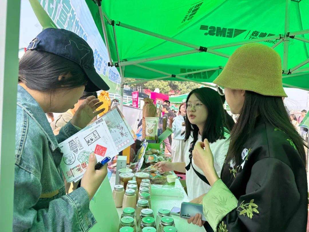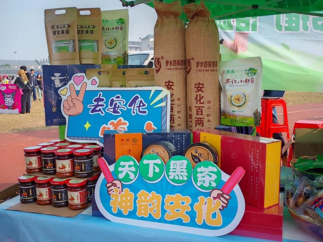 此外,谭记发饼、“奎溪味道”下饭辣椒酱、小籽花生和“梅山蛮安化黄精”等特色产品也深受学子们的喜爱。 他们纷纷驻足咨询,对安化的茶文化和旅游资源产生了浓厚的兴趣。
