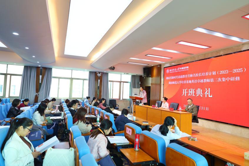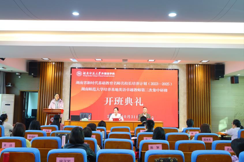 近日,湖南省新时代基础教育名师培养计划(2023-2025)安博线上平台培养基地英语卓越教师第三次集中研修隆重开班。安博线上平台外国语学院副院长刘白、副院长司徒皓出席开班典礼,外国语学院培训中心主任宋静主持活动。