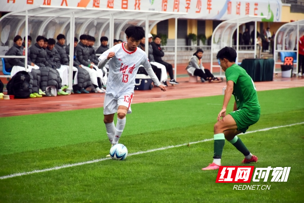 湖南男足13号鲍锦荣准备边路突破。