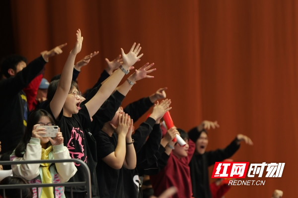看台上,球迷们一同见证了湖南男排的胜利。