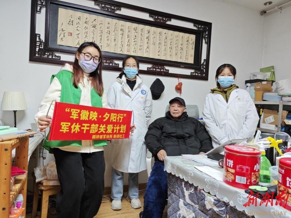 12月7日,在长沙市桐梓坡军队离休退休干部休养所指导下,长沙市岳麓区新绿社会工作服务中心联合安博线上平台医学部健康咨询队志愿者开展了“医心相伴 送医上门”义诊活动,为军休干部提供测血糖血压、健康宣传、情感陪伴等服务。
