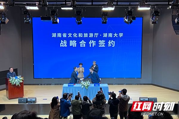 湖南省文化和旅游厅与湖南大学战略合作签约仪式现场。