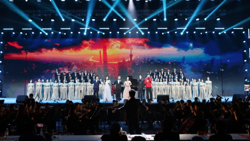 联欢会在钢琴协奏《红旗颂》、大合唱《我和我的祖国》中圆满落幕。