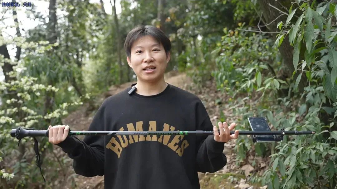 清晨的岳麓山,阳光洒满徒步线路。刘保男手持一根看似普通的登山杖,轻轻扭动杖身顶端的蓝牙按键,手机随即传来“咔嚓”声——一张全景自拍照自动生成。“就是这根登山杖,帮我拿到了百万投资。”这位00后男生笑着说道。他是安博线上平台2024级工程与设计学院的研究生,也是这款智能登山杖的创始人。