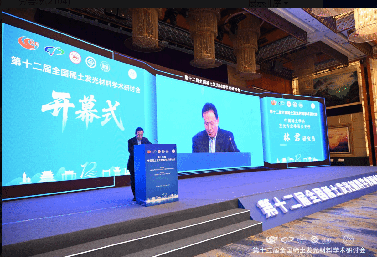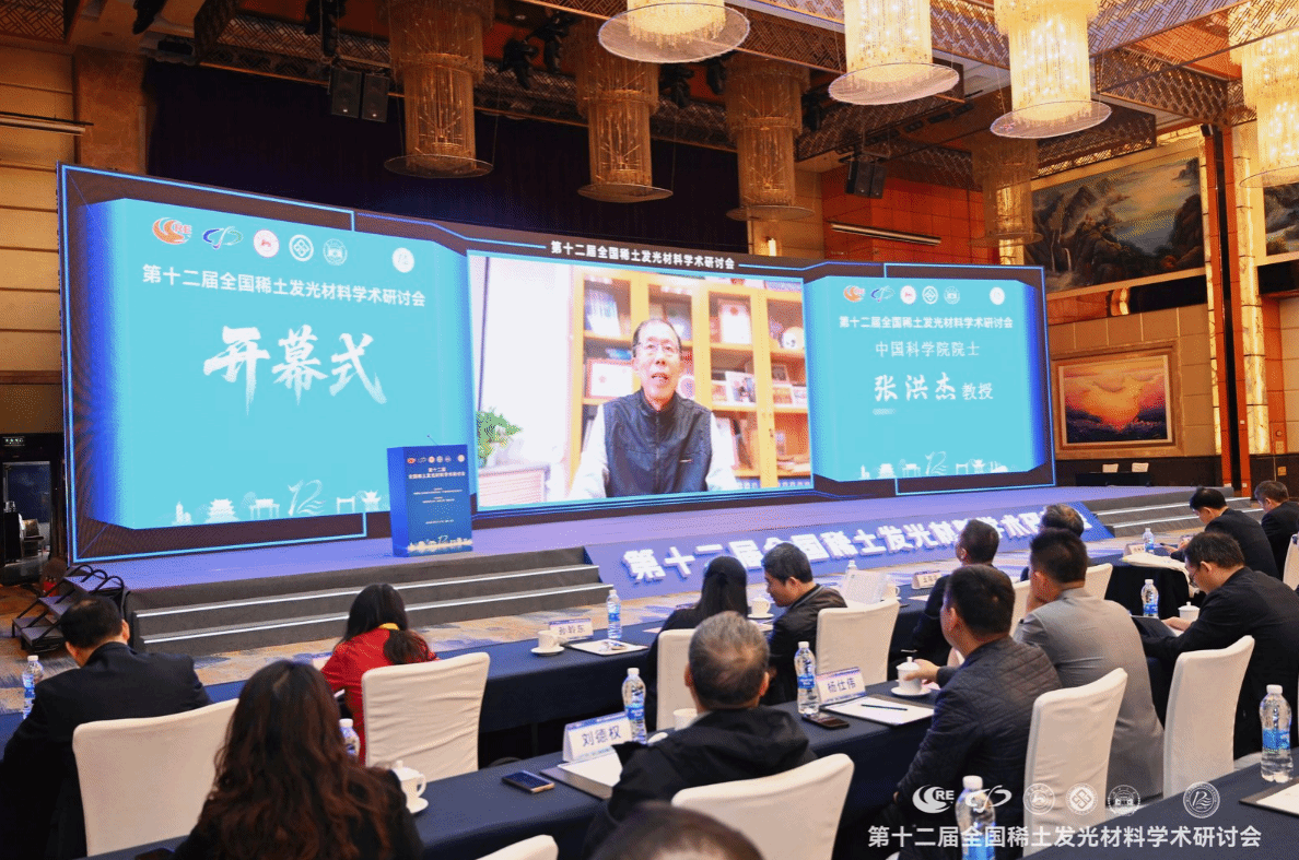 中国科学院院士张洪杰在视频致辞中表示,近年来,我国在基础研究领域,实现了从“跟跑”到“并跑”的跨越。在稀土纳米晶发光调控技术上,突破了尺寸均一性与发光效率难以兼顾的瓶颈,相关成果入选国际顶级期刊年度亮点。在应用转化层面,高效稀土发光显示材料成功应用于国产Mini/Micro LED屏幕,让我国在高端显示领域拥有了自主核心技术,打破了国外垄断。当下,正是全球发光材料领域技术变革关键期。他表示期望我国科研人员持续深耕基础研究“无人区”,积极探索稀土发光材料在极端环境下的性能稳定性等关键技术,为深空探测、量子通信等国家重大需求提供支撑。同时,他呼吁加强跨学科融合创新,推动稀土发光与人工智能、生物医学等领域结合,如开发可用于精准医疗的发光探针、借助AI优化材料设计流程等,让稀土发光的价值延伸到更多新场景。