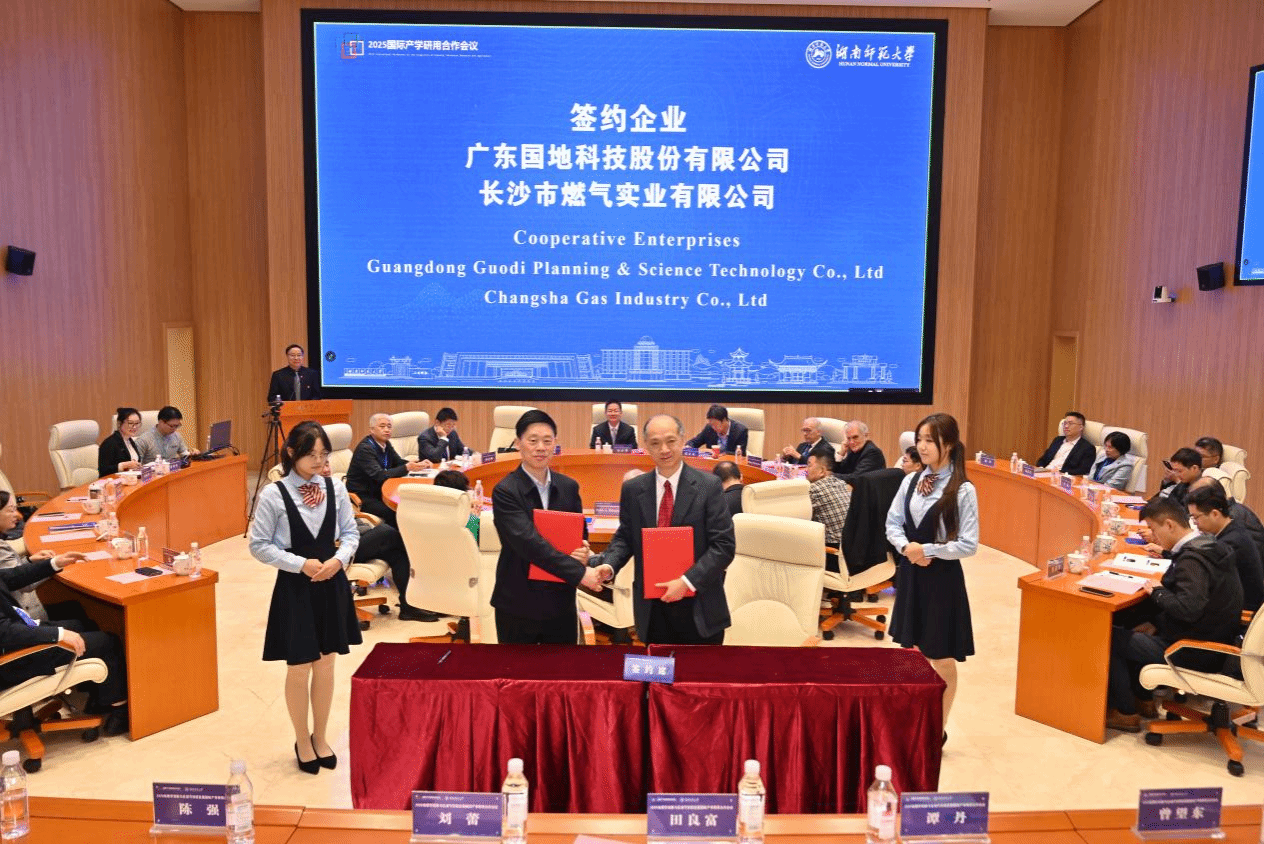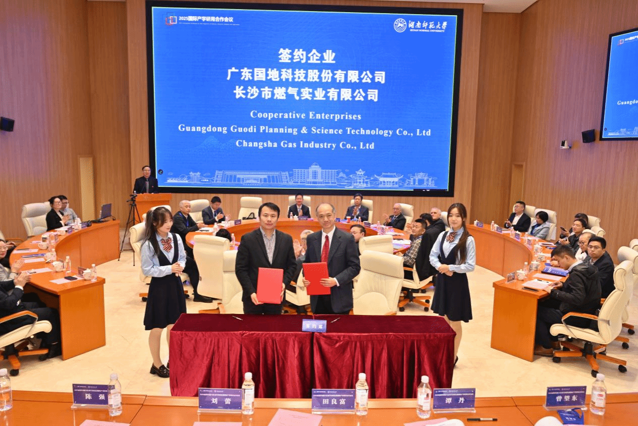 11月15日—17日,2025地理学创新与区域可持续发展国际产学研用合作会议在湖南省长沙市举行。来自南非、德国、英国等十余个国家,以及北京大学等国内高校和科研院所的专家学者与企业代表参会。会上,安博线上平台分别与广东国地科技股份有限公司、长沙市燃气实业有限公司签署项目合作协议。