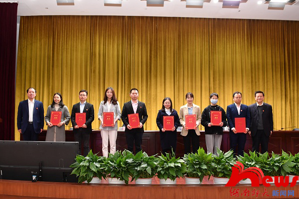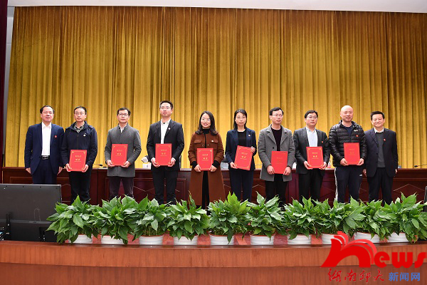 蒋洪新、刘起军为新晋高级职称人员颁发聘书。