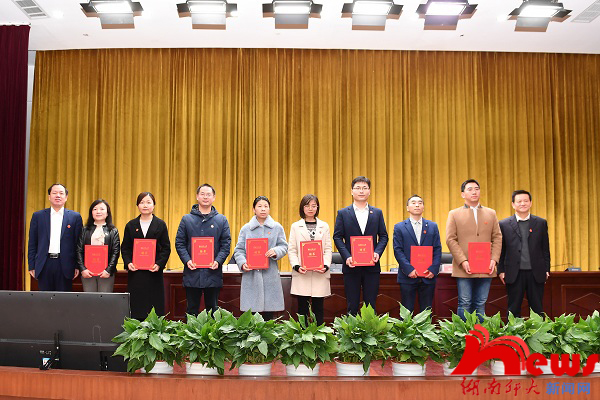 蒋洪新对新晋高级职称的教师表示祝贺,对教师们所作的贡献表达了感谢。他强调,一流大学必须配置一流师资,高层次的人才是高水平大学建设的核心要素。人才是治学兴校的第一资源,人才引育工作为我校的建设发展注入了强劲动力。我校所取得良好成绩的重要原因离不开济济英才的加盟。今后,我校将更加重视和尊重人才,进一步营造“人尽其才、才尽其用”的良好氛围。他对受聘教师寄予厚望:一是要厚植家国情怀,争做报效祖国的表率。我校广大教师要关注国事,以己之智为国家建设发展做贡献;二是要严守初心使命,争做立德树人的典范。人民教师要不辱教书育人这份无上光荣的使命,甘为人梯,甘当铺路石,切实担负起为国育才的职责;三是要潜心学术,争做学识扎实的榜样。教师要以扎实的学识启发学生潜能,并妥善处理教学与科研的关系。他表示,学校将进一步建立和完善教师荣誉制度,关心和支持教师的事业发展,努力为大家教书育人和学术研究提供尽可能好的环境和条件,使教师群体切实感受到学校对人才的关心与爱护。