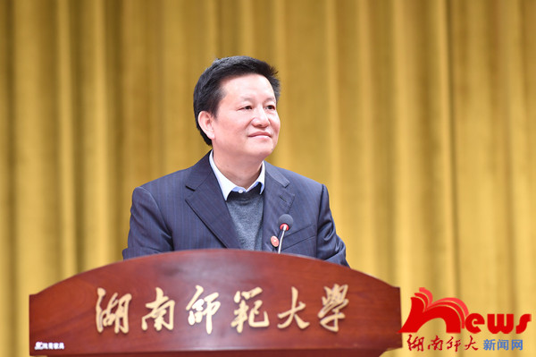 蒋洪新对报告进行总结。他表示,此次报告政治站位高、内容丰富、说理透彻、感情充沛,具有极强的说服力和感染力,对推进学校相关工作具有重要意义。他以此次党史学习教育为契机,根据省委及教育工委的要求,对全校各级党组织和广大党员干部提出三点意见。一是要创新学习形式,以集中研讨为主要形式,以到革命遗址、爱国主义教育基地等开展现场教学为辅助手段,推动全校形成良好的学习氛围;二是要把握学习重点,将党史的学习与中国道路的选择相结合,深入学习思考,增强“四个自信”,坚定对马克思主义、中国特色社会主义的信仰,对以习近平同志为核心的党中央的信赖,对实现中华民族伟大复兴、中国梦、现代化和新湖南建设的信心;三是要力行学习有实效,将党史学习教育与当前工作相结合,从国家“十四五”规划中寻找方向、把握机遇、谋划发展。按照国家制定的大政方针,围绕学校第五轮学科评估、本科师范专业认证、本科教学评估等工作早做准备,以此抢抓先机,推进学校高质量发展,并要求各二级党组织各部门各单位开展“我为师生办实事”项目,积极解决师生“急难愁盼”问题,以此增进师生的获得感、幸福感。他希望,各二级党组织按照党委统一安排,进一步深入学习此次报告,结合本单位工作紧抓落实。