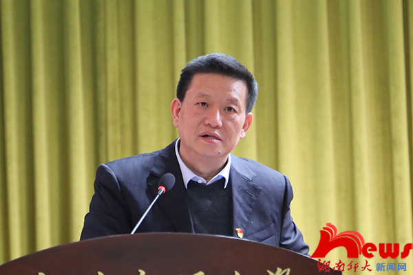 蒋洪新对大家一直以来的辛勤付出表示感谢,并祝贺所有获得表彰的先进单位与个人。他对从严治党及平安校园建设两项工作提出了要求。他指出,要充分认识全面从严治党的政治意义,加强政治引领,坚决反对“四风”,坚持“严”的主基调,推动党风廉政建设纵深发展。他强调,各部门要深化责任意识,紧密围绕“平安高校”建设的各项目标要求,不断完善工作机制,为推进学校事业健康稳健发展营造一个安全稳定的校园环境。