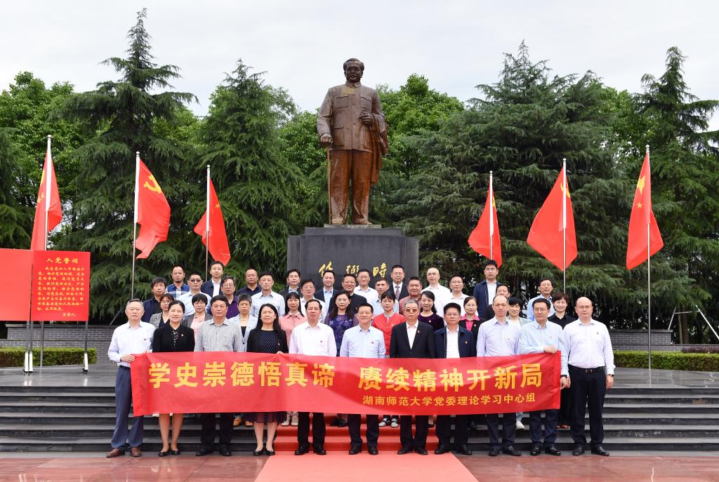在汨罗市弼时镇,蒋洪新、刘起军等校党委理论学习中心组成员向任弼时同志铜像敬献花篮,并参观了任弼时纪念馆、瞻仰了任弼时故居,了解任弼时同志生平感人事迹和卓越功勋,接受“三怕精神”“骆驼精神”的洗礼。