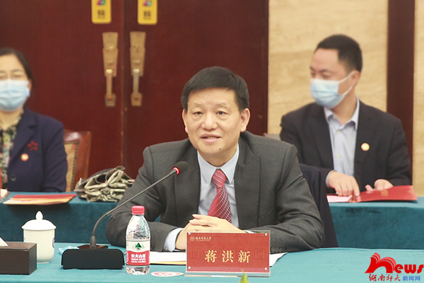蒋洪新作表态发言。他感谢省委、省政府一直以来对学校各项事业发展的支持与厚爱。他表示,学校将认真贯彻落实好谢卫江副省长此次调研的指示精神,抓好第二十七次全国高校党的建设工作会议、中央人才工作会议两个中央重要会议精神的落实,坚定为党育人、为国育才的初心使命,为推动教育强省建设,高效服务乡村振兴、“三高四新”发展战略,建设现代化新湖南做出新的更大贡献。