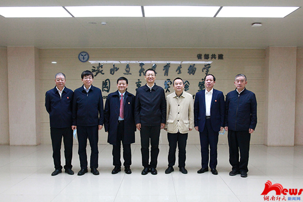 谢卫江一行调研了我校图书馆、博物馆、古籍特藏室,聆听了相关负责人的汇报。在淡水鱼类发育生物学国家重点实验室,刘少军院士围绕实验室的创建历史、种业引领、发展规模等方面对产学研情况进行了介绍。谢卫江充分肯定了我校图书馆、博物馆、古籍特藏室的建设成效,并高度赞扬了我校国家重点实验室对湖南省产业发展所做出的贡献。