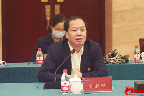 座谈会上,刘起军对谢卫江一行来校调研表示热烈欢迎,对省委、省政府对学校的关心支持表示衷心感谢。他介绍了学校成立历史渊源、发展规模、现阶段影响力等基本情况,从人才培养质量、科学研究成果、服务发展能力、党建思政工作等方面展示了我校近年来取得的丰硕成果,并阐述了我校未来的发展规划。他表示,学校将进一步坚持立德树人的根本任务,深入推进“双一流”建设,更好地服务湖南省“三高四新”战略和现代化新湖南建设。