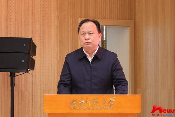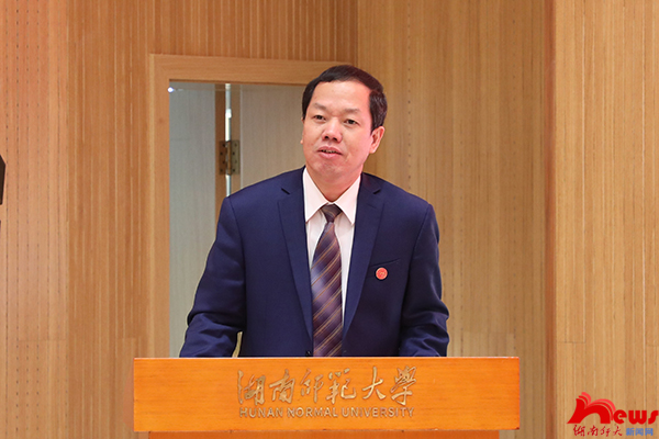 蒋洪新对各位嘉宾的到来表示热烈欢迎和衷心感谢,对中共党史党建研究院的成立表示热烈的祝贺。他指出,学校自1938年创建之日起就以“文化的先进,国民的导师”为理想,将自身的发展与国家前途、民族命运紧密相连,始终扎根中国大地办教育。中共党史党建研究院的成立既是传承湖湘红色文化的内在要求、弘扬伟大建党精神的具体实践,也是建设“双一流”高校应有的作为、办好社会主义大学的责任所在。学校在中共党史研究方面拥有着扎实的研究基础,在人才培养、师资队伍、理论研究和学科建设方面有传统、有底蕴、有人才、有成就。他强调,面向未来,学校党委将举全校之力,汇聚优势力量,提供坚强保证,大力推进党史党建研究院的建设,努力将其打造成为国际水准、中国气派、湖湘特色的学术研究新平台、理论智库新标杆、资政育人新阵地,为党的各项事业发展培养高质量人才,为服务“三高四新”战略、推进国家经济社会发展贡献更多智慧和力量。