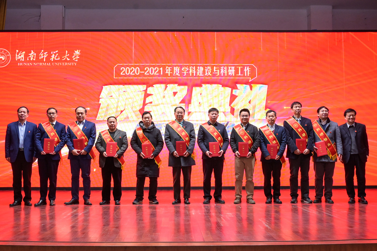 蒋洪新向获奖先进集体和个人表示热烈的祝贺,向为学校学科建设和科研工作作出贡献的老师表示崇高的敬意和衷心的感谢。他指出,学校党委和行政高度重视学科建设和科研工作,面对新的挑战和形势,将从以下四个方面继续推进各项工作。一是聚焦大学本源,更加突出教学与科研工作。要把教学和科研摆在更加突出的位置,一方面坚守教学,另一方面要以科研立身。二是聚焦立德树人,以高质量教学科研引领人才培养。要强化教书育人、科研育人,真正实现以高质量教学科研引领高素质人才培养。三是聚焦社会服务,始终紧扣国家和社会重大战略需求。要努力在服务现代化新湖南建设和国家经济社会发展中贡献师大智慧和力量。四是聚焦协同创新,产出更多标志性科研成果。要把学校传统的优势学科做强,把国家战略急需的学科做精,把新兴交叉融合的学科做实,不断提升科研能力。