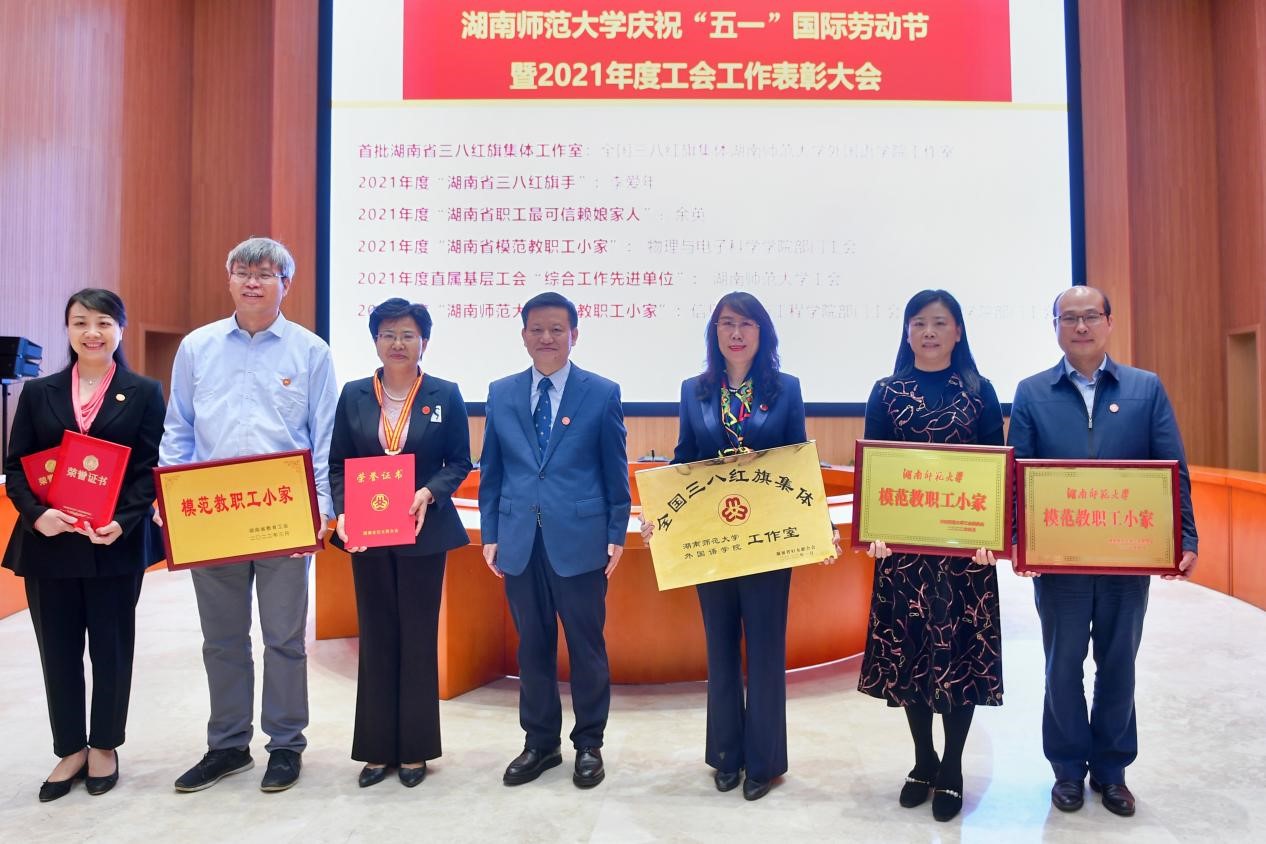 欧洲科学院院士、校党委书记蒋洪新向全体师生员工致以“五一”节日的问候,并向获奖的集体和个人表示祝贺。他提出三点建议:第一,教师是高尚的劳动者。教书育人是教师的神圣职责,教师应当秉承师大仁爱精勤的校训,用心教学,潜心育人,为国家和社会培养更多的英才。第二, 劳动最光荣。我校有一批敬业乐道、守正创新的师德楷模和劳动模范。教师们要主动对接国家和湖南省重大战略需求,不断提升科研创新能力和社会服务能力,以创新思维和实干实绩来彰显双一流大学的实力和担当。第三,师大是全体师生共同的幸福家园。学校的每一次跨越式发展都凝聚了全体师大人的智慧与汗水,全体师生和工会组织要继续发扬艰苦奋斗、团结拼搏的优良传统,广泛凝聚发展合力,以优异的成绩迎接党的二十大胜利召开。