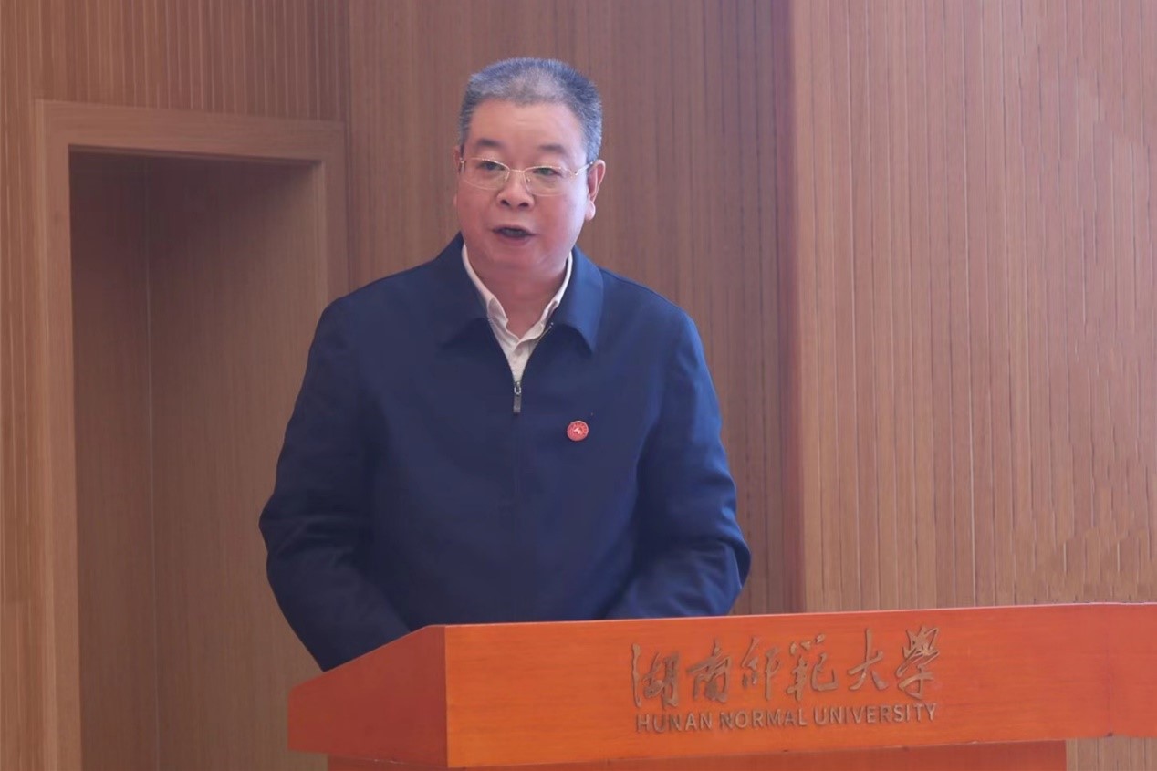 周俊武传达了习近平总书记给首届大国工匠创新交流大会的贺信精神。向全校师生传达了学校荣获全国总工会颁发的“全国五一劳动奖状”的喜讯。他对先进单位及先进个人为我校作出的贡献表示感谢,并希望全体教职工向先进典型学习,大力弘扬劳模精神、劳动精神、工匠精神,为全力建设“五个师大”、为湖南“三高四新”战略和学校“双一流”建设目标奋力拼搏,以昂扬的斗志和崭新的姿态迎接党的二十大胜利召开。