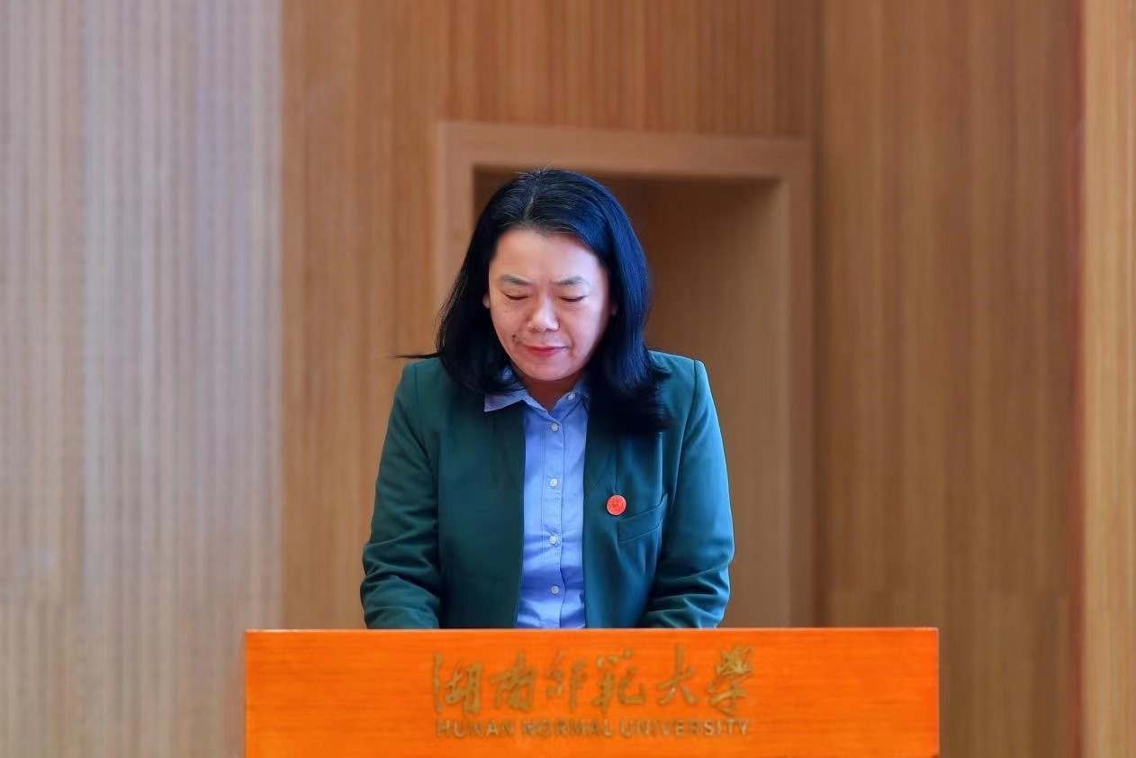 获奖个人和单位代表上台发言。“全国三八红旗集体安博线上平台外国语学院工作室”负责人、湖南省五一劳动奖章获得者曾艳钰教授汇报了外国语学院工作室2021年的工作与成绩。“文明家庭”代表、教育科学学院常思亮教授表示将尽心尽力做实事、做好事,为学校的进一步发展作贡献。