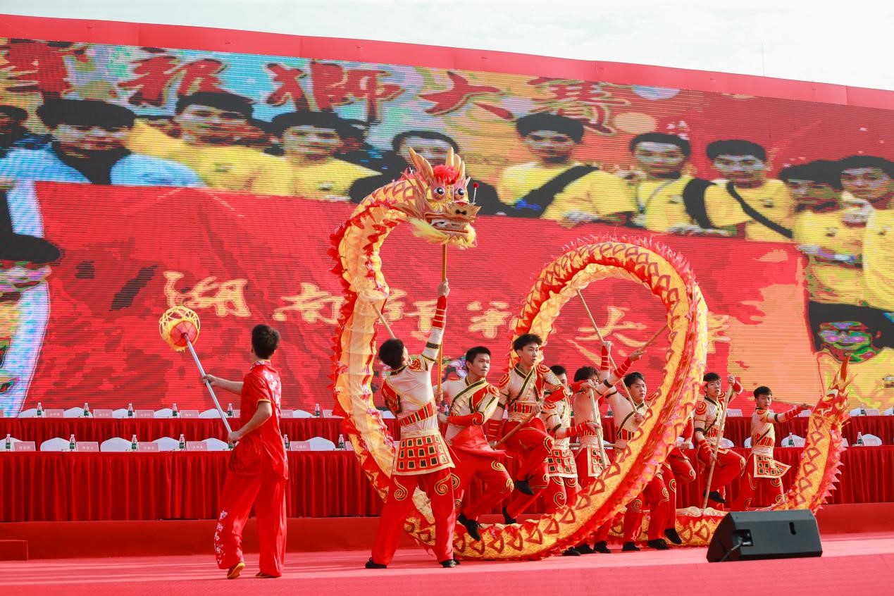 典礼开始前,来自体育学院和音乐学院的学生代表带来龙狮表演、竹笛合奏、流行歌曲串烧、舞蹈《只此青春》 等暖场节目。