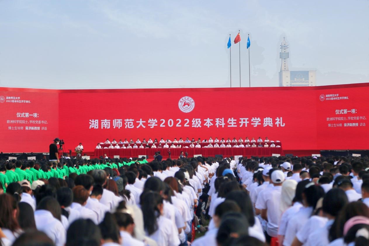 校党委书记、欧洲科学院院士蒋洪新致辞。他代表学校向2022级全体新生表示欢迎和祝贺。他指出,师大是一所有底蕴、有传承、有担当、有品格的大学。同学们要传承好学校光荣历史传统和校训精神品格,成就美好而精彩的人生,成为祖国的栋梁之材。他对全体新生提出殷切期望:一是立德修身,涵养家国情怀。希望大家始终心怀大我、心系苍生、心有家国,将爱国情、强国志、报国行自觉融入青春血脉、融入人生征程,彰显师大学子的大格局、大情怀和大担当。二是立学求真,书写奋斗华章。希望大家勤奋治学、善于思考、勇于探索、敢于创新,夯实专业功底,拓展学术视野,提高综合素质,用不懈奋斗和努力拼搏赋予大学生活乃至整个人生全新的意义。三是立行实干,实现青春梦想。新时代气象万千,大学生活五光十色,舞台空前广阔,希望大家在社会实践、创新创业、志愿服务和国际交流等平台上淬炼青春、挥洒汗水、砥砺梦想,追求更有高度、更有境界、更有品位的人生。他祝福同学们度过一段奋进、充实、愉快而美好的大学时光。