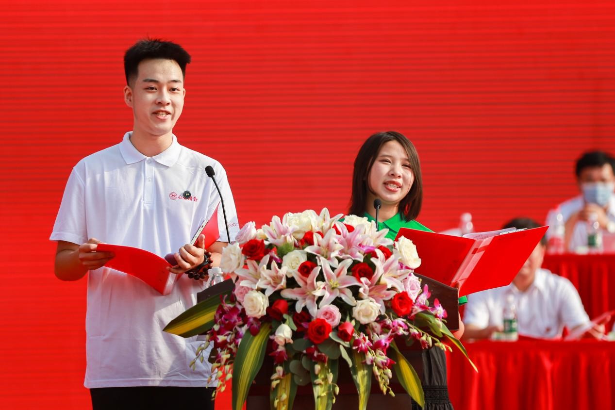 美术学院2022级本科生舒昕和医学院2022级本科生苏拓作为新生代表发言。他们追忆了高中求学经历,对即将开启的大学生活满怀期待。他们表示,在未来的学习与生活中,自己将同“并肩者们”一道,不负青春,让梦想扬帆起航,坚守严谨治学的初心和热爱,寻找一份前人所坚定追逐的“仁爱精勤”,努力成为发光发亮的师大人。