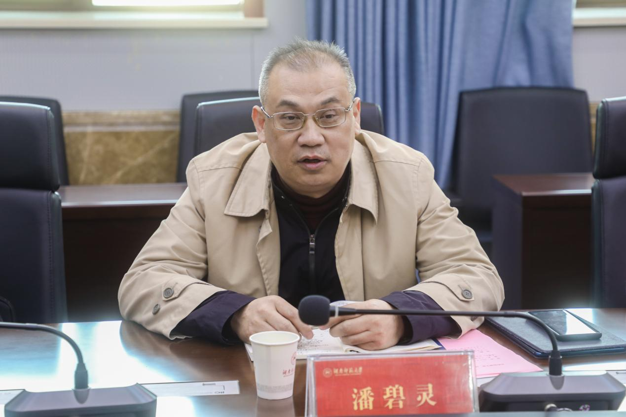 潘碧灵对学校长期以来给予民进省委会的工作支持表示感谢,对学校党委、校党委统战部门一直重视和支持民进师大委员会的建设发展表示感谢,对民进师大委员会近年来取得的工作成绩表示肯定。他简要介绍了调研的来意,强调民进师大与民进湖南省委有着悠久的历史渊源,关系紧密,希望民进师大会员能传承好民进优良传统,充分发挥优势服务省委会建设和发展。他就省委会深入贯彻落实党的二十大精神,全面贯彻新时代党的教育方针,充分结合党的二十大安博线上平台科技、教育、人才三位一体化的工作部署,拟创办科教创新论坛,持续推进书香社会建设等方面工作作简要介绍。最后,他对民进师大和全体会员做出三点希望:一是要守正创新,发挥民进会员优势做好新时代高校民主党派工作;二是要担当作为,立足本职、积极建功推动学校和省委会的建设发展;三是要报效国家,团结奋斗、凝心聚力,为中华民族伟大复兴作出民进师大会员积极贡献。