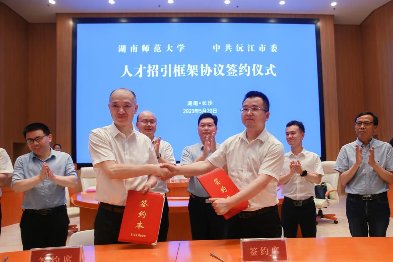 (记者 李欣茹 周佳芯)5月20日上午,我校在图书馆报告厅举行“智汇潇湘·才聚沅江”沅江市企事业单位招才引智活动暨我校与中共沅江市委人才招引框架协议签约仪式。中共沅江市委书记、二级巡视员杨智勇,我校副校长杨震出席会议。