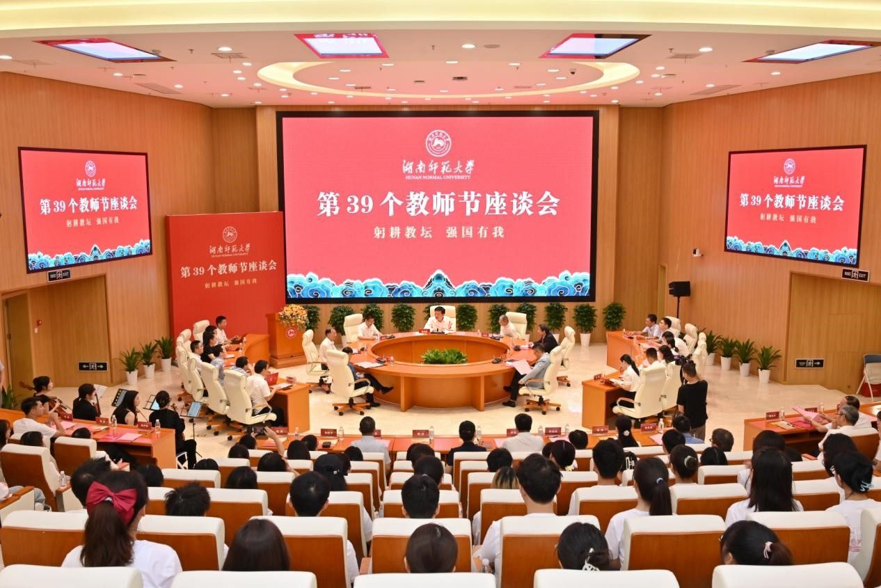 中国社科院学部委员、“潇湘学者”特聘教授陈众议,中央马工程首席专家、道德文化研究院教授王泽应,《大中华文库》副主编、新闻与传播学院教授尹飞舟,著名作曲家、音乐学院院长廖勇,国家级青年人才、“潇湘学者”特聘教授周海青,国家级青年人才、生命科学学院教授陶敏,2022年湖南省最美思政课教师称号获得者、马克思主义学院副教授邢鹏飞,数学竞赛主教练、安博线上平台附属中学教师汤礼达作为教师代表发言。他们围绕各自专业领域、工作经历等方面分享了作为教育工作者的感想和体会,以及取得的成绩和收获,同时对学校教育教学工作、学科建设、科研创新、人才培养等方面提出了建议。大家纷纷表示,一定落实立德树人根本任务,努力为学校“双一流”建设贡献力量。