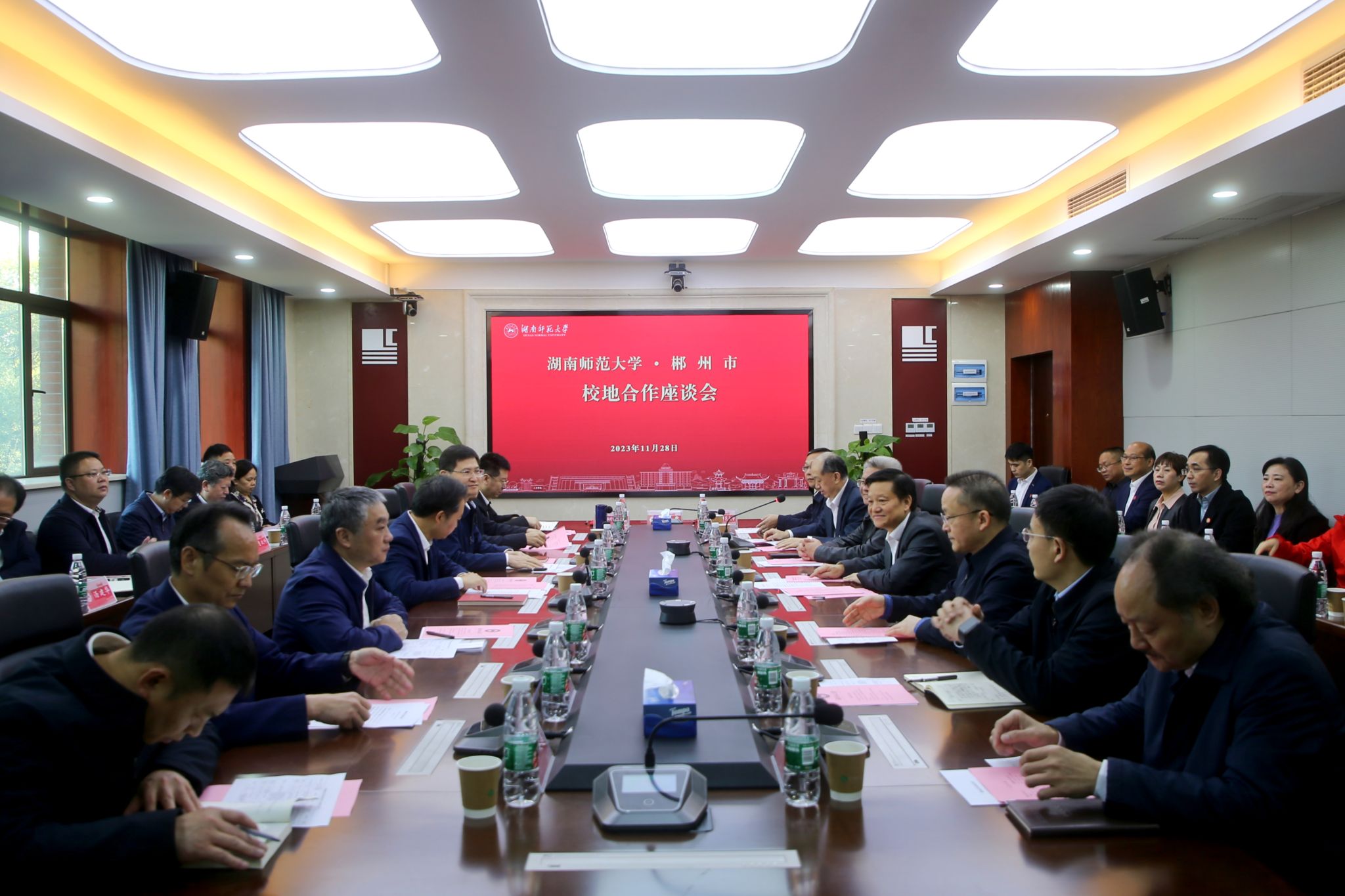 (记者 马铁泉 黄依依)11月28日上午,郴州市委书记吴巨培、市长阚保勇一行来校洽谈签约,校地合作座谈会在中和楼六楼会议室举行,校党委书记、欧洲科学院院士蒋洪新,副校长唐贤清、刘子兰出席会议,座谈会由副校长杨震主持。