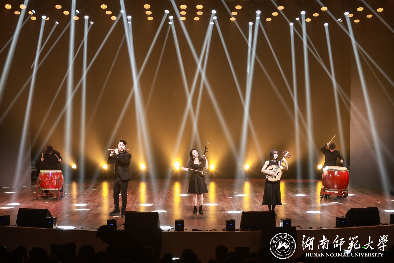 我校新年联欢会在体育学院和附小带来的开场秀《龙翔凤舞》中拉开序幕,此秀犹如破云之龙,点燃全场热情。一首《cheek to cheek》,爵士风情浓郁,尽展我校青年教师之风采。群舞表演《永不停歇》用青春之姿表达附中青年对国家始终如一的热爱。附属湘东医院用情景朗诵《红医传承》讲述红医精神传承故事,展英雄之光,讲英雄文化,传英雄精神。民族器乐表演《乐旋雅韵》承载着对音乐之美的理解与追求,演奏出了宫商角徵羽的壮阔辉煌。舞蹈创意秀《中国旗袍》,我校女教职工代表身着中国传统旗袍,展飘逸、典雅之姿。混声合唱《在银色的月光下》以月为水,以月为歌,激荡彼此情谊,唱响心中激昂。第一附属医院(省人民医院)创意舞蹈《绘彩疗方一舞绘千年导引图》重现2100年之前的保健运动导引图谱。相声表演《放鞭炮》在开怀大笑中思考工作生活之道。舞蹈《铜铃魂》运用非遗项目湘西土家族“八宝铜铃”舞蹈语汇,呈现土家族人民勤劳勇敢、自强不息的精神面貌。国际学生经典诵读《青春》展示我校国际青年在构建美好世界和人类命运共同体中的责任与担当。女子独唱《七律》,飒爽英姿、激越歌声,唱响千年学府岳麓书院“实事求是”“敢为人先”的民族强音。晚会在雄浑动人的合唱与交响曲《缆车》《领航》中完美落幕。“乘风破浪,扬帆远航,领航中国在新时代的征程上。”回首过往,我校在长期的发展过程中,经过历史的沉淀、选择、凝聚,形成了以“仁爱精勤”为精髓的独特大学文化。展望未来,师大人将传承和弘扬先辈精神,以永不懈怠的精神状态和一往无前的奋斗姿态,朝着建设教师教育特色鲜明、国内一流、国际上有影响的高水平综合型大学的目标奋勇前进。
