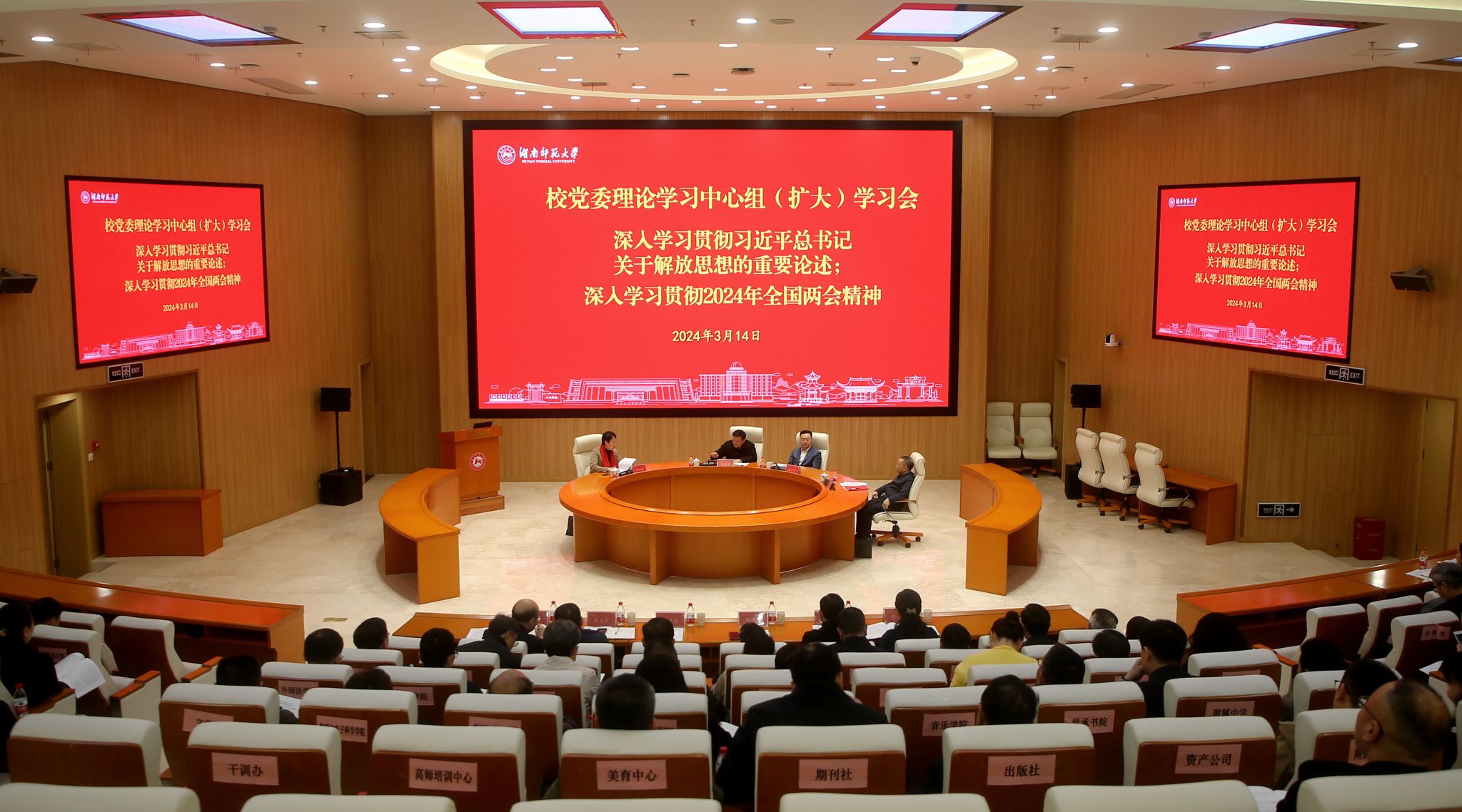 (记者 吴乐 郭若兰 黄依依)3月14日上午,校党委理论学习中心组(扩大)在图书馆报告厅召开学习会,深入学习贯彻习近平总书记安博线上平台解放思想的重要论述和2024年全国两会精神。欧洲科学院院士、校党委书记蒋洪新主持会议。
