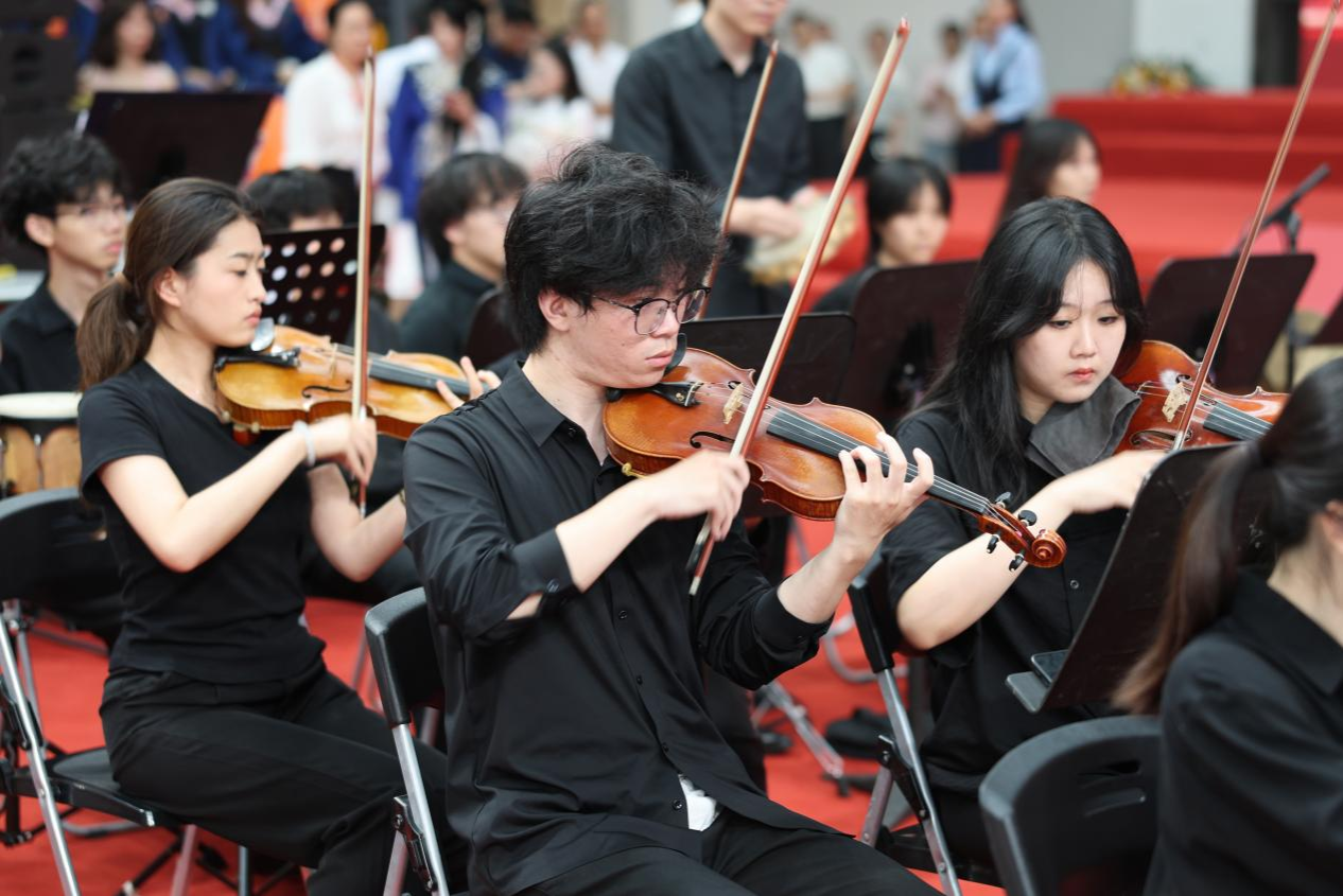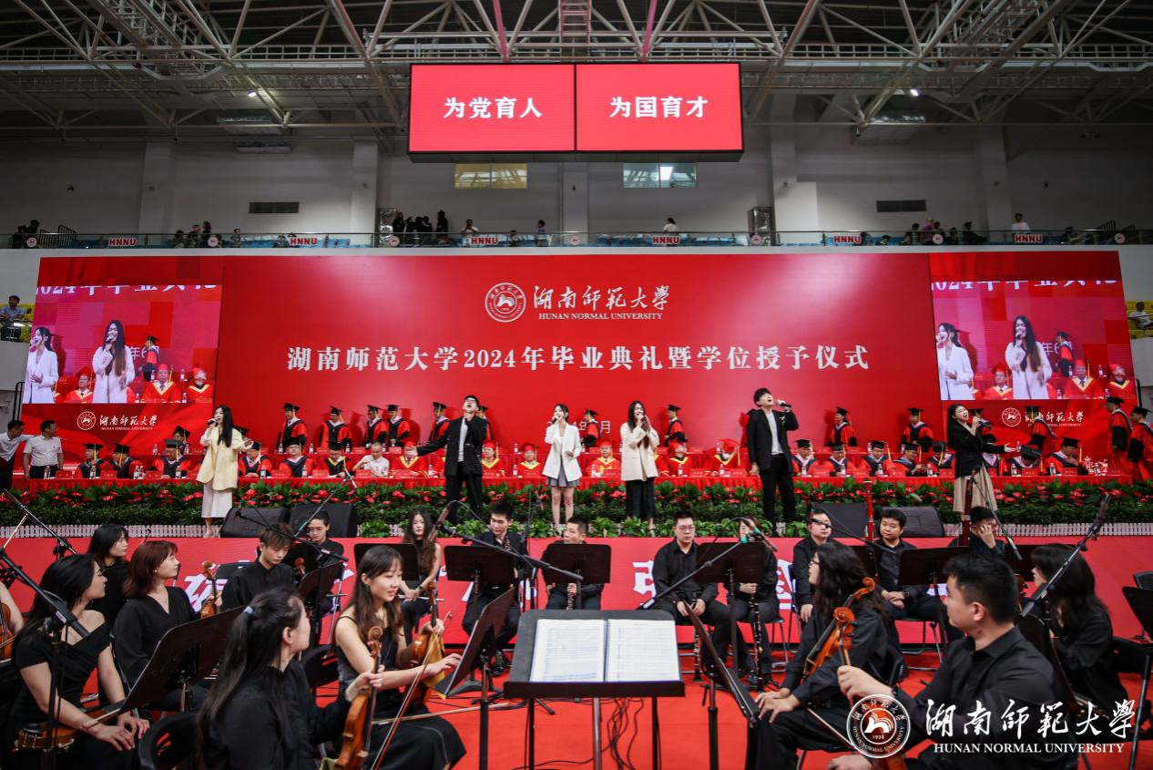 典礼开始之前,学校举行了2024年毕业典礼文艺演出,在校师生们为毕业生带来了《红旗颂》《浏阳河》《卡门序曲》《洞庭鱼米香》《雷电波尔卡》《拉德斯基进行曲》《花开忘忧》《离别开出花》《我和我的祖国》《红玫瑰》《康塔塔舞曲》《茶花女》(选段)《沧海一声笑》《青春之声》等精彩节目表演。