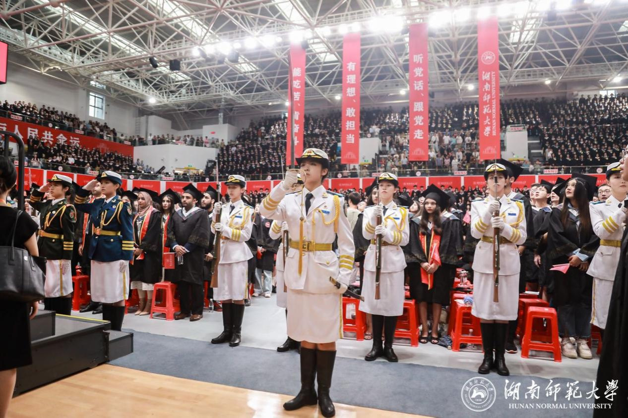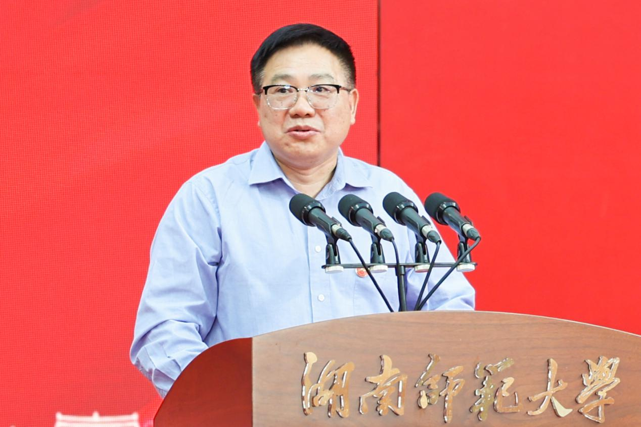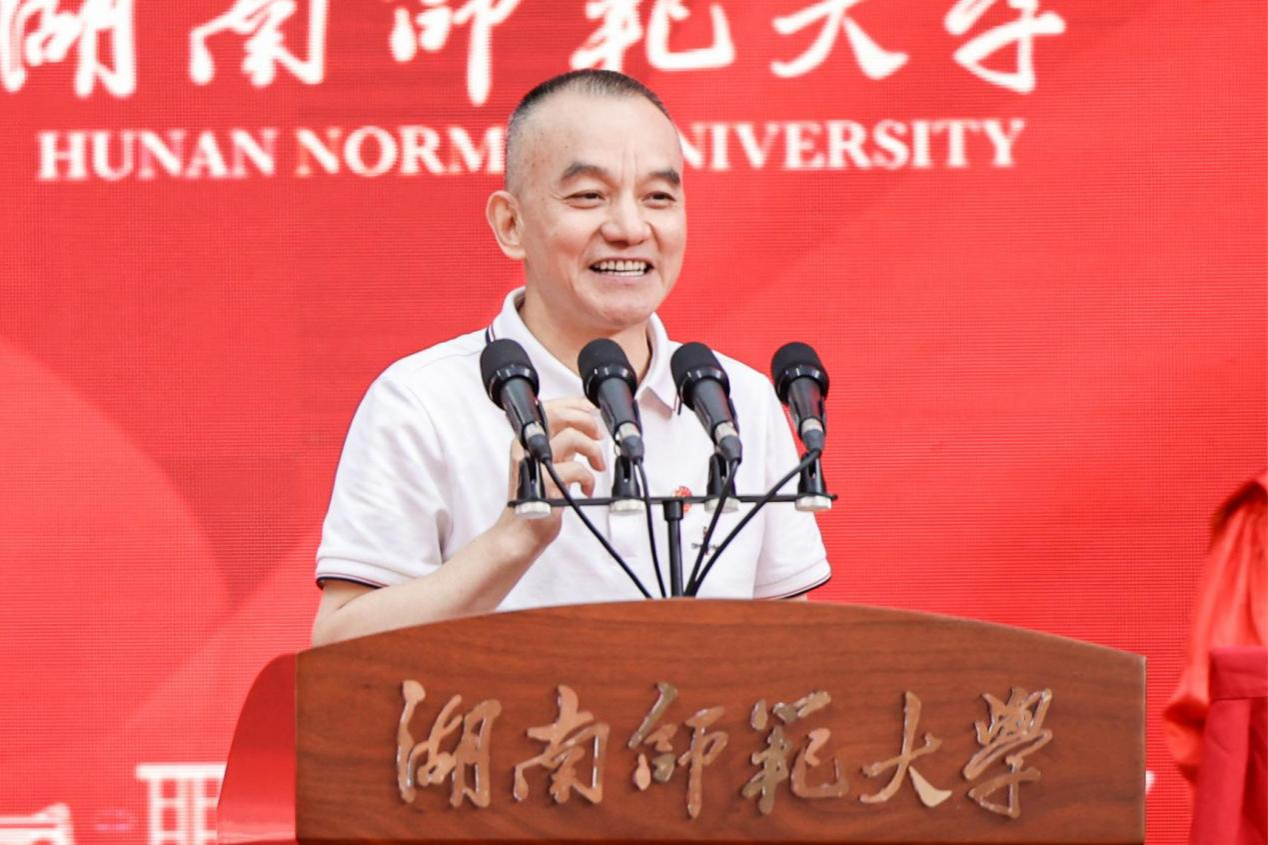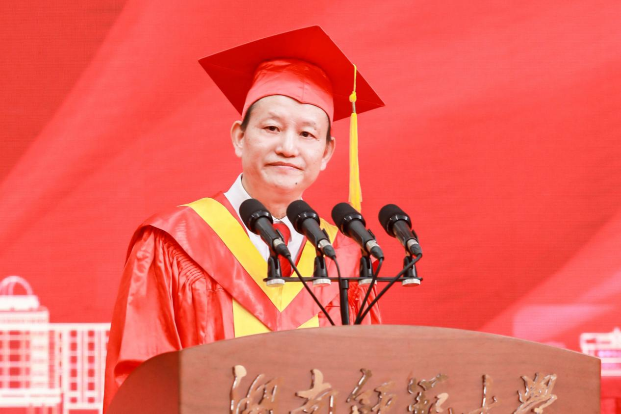 校长刘仲华以“一路向阳,华彩绽放”为题为本科毕业生同学们送去毕业祝福。他代表学校向全体本科毕业生们表示热烈祝贺,向所有关心、支持和帮助同学们成长成才的教职员工、亲友、校友和各界人士致以衷心感谢。他表示,同学们在师大四年的学习与生活中,与时代同呼吸,与师大共成长,一步步成长为“未来教育家”“师大之星”“红色主讲人”。临别之际,他对毕业生提出三点希望:一是要以“功成必定有我”的执着,心系家国,逐梦前行。广大青年作为中国式现代化建设的中坚力量,要心怀“国之大者”,勇立时代潮头,乘风逐梦、踏浪歌行。二是要以“不畏浮云遮望眼”的定力,常怀仁爱,向阳前行。面对眼前纷繁复杂的世界,希望即将步入社会的师大学子以前辈校友为榜样,不忘“仁爱精勤”的火种,坚守师者的使命重任,不断擦亮“湖南师大”的名片。三是要以“千磨万击还坚劲”的豪情,矢志奋斗、勇毅前行。希望广大毕业生行而不辍、无畏向前,以青春之我、拼搏之我,书写时代青年的壮丽华章。